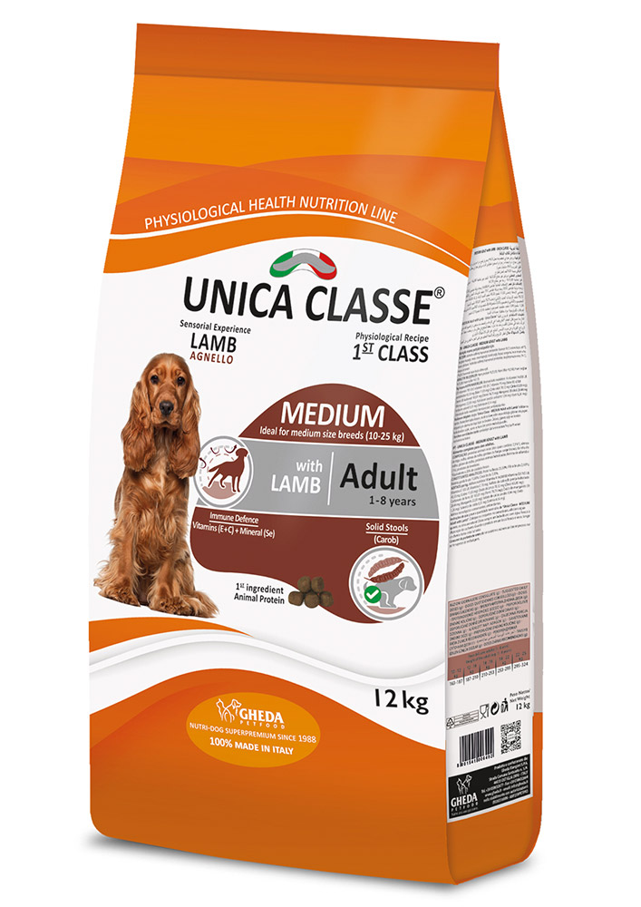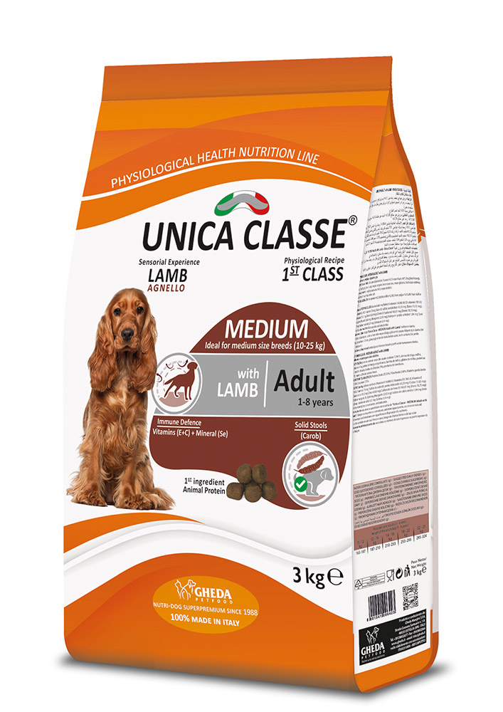 COMPOSIZIONE: Proteine animali disidratate (di cui agnello 7,5%*), farinetta di frumento, granturco, farinetta di granturco, grasso animale, sorgo bianco (5%), fioretto di granturco, glutine di granturco, proteine animali idrolizzate, farina di carruba (1%), prodotti del lievito. *equivalente al 20% di agnello reidratato.