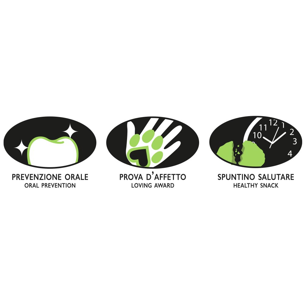 Lo snack è utile per la prevenzione orale e per dare la prova d’affetto al cane, oltre che essere uno spuntino salutare per tutte le ore.