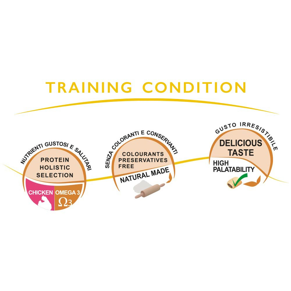 Sono contenute le proteine di Pollo e gli acidi grassi Omega 3 per offrire il massimo del nutrimento e del gusto. La realizzazione è naturale senza coloranti e conservanti mentre il sapore delizioso non ha eguali in appetibilità.